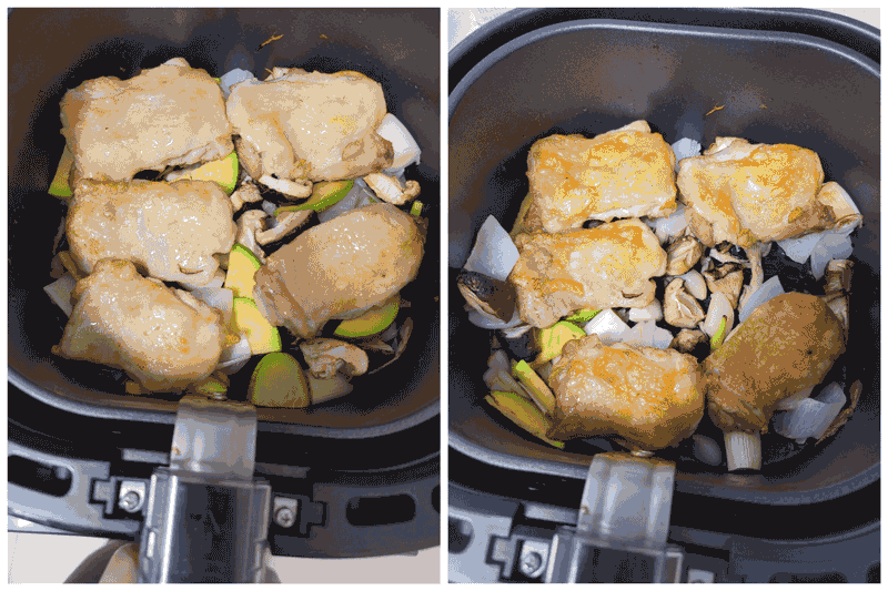 결과적으로 180도에서 20분(닭다리살) + 13분(닭다리살+채소) => 총 33분 구워줬습니다.